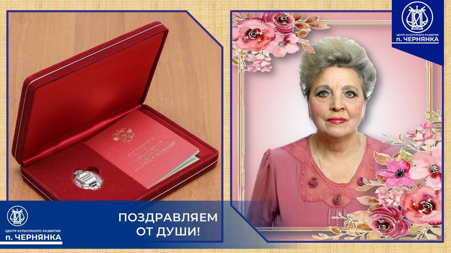Указом Президента РФ за заслуги в области культуры и искусства почетное звание «Заслуженный работник культуры Российской Федерации» присвоено руководителю вокально-хоровых коллективов Центра культурного развития поселка Чернянка Татьяне Поляничко. Татьяна Петровна отдаёт служению искусству всю себя, работая на протяжении многих лет в Районном Доме культуры – ныне Центре культурного развития п. Чернянка. Закончив в 1977 году Белгородское культурно-просветительское училище, начала она ещё совсем юной девушкой свой творческий путь к вершинам мастерства. И вот закономерный итог - теперь она заслуженный работник культуры. Мы от всей души поздравляем её с получением этого почётного звания и ждём от неё новых свершений в развитии сферы культуры и искусства нашей малой родины.